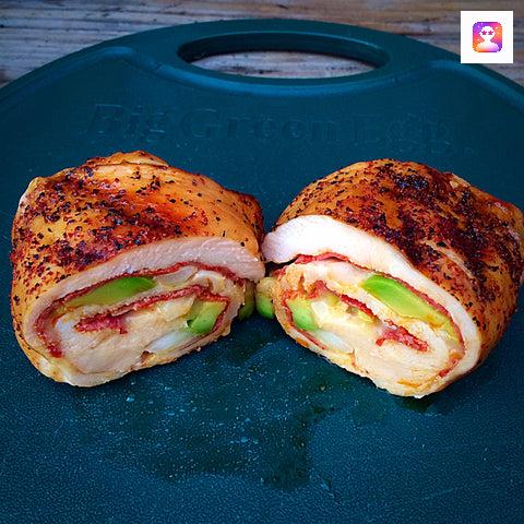 Roll the chicken breast up tightly. Secure it with a skewer or butcher's twine. The more you load it up, the harder it will be to contain!