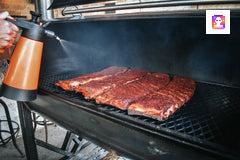 Place the ribs meat side up in the smoker. Spritz the ribs with apple juice every 45 minutes.